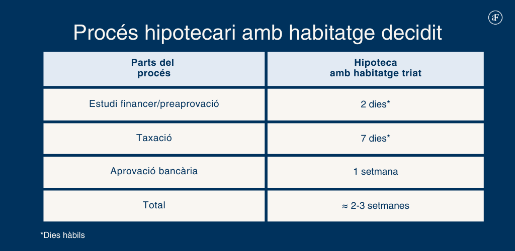 En tenir l'habitatge ja definit, el procés s'agilita i podem sol·licitar ofertes hipotecàries concretes i actualitzades..