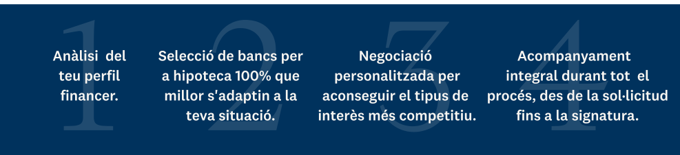 Amb la hipoteca 100%, és possible accedir a casa sense necessitat de liquiditat prèvia. A aFinance t'ajudem a aconseguir-la, negociant les millors condicions perquè compleixis el teu somni d'habitatge propi de forma ràpida i segura.