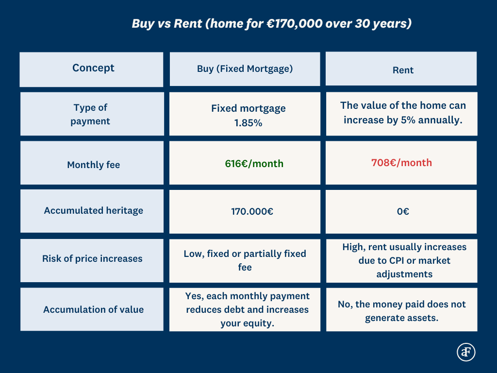 While renting may seem convenient and flexible, every euro you pay doesn't translate into equity. Buying a home, on the other hand, allows you to: